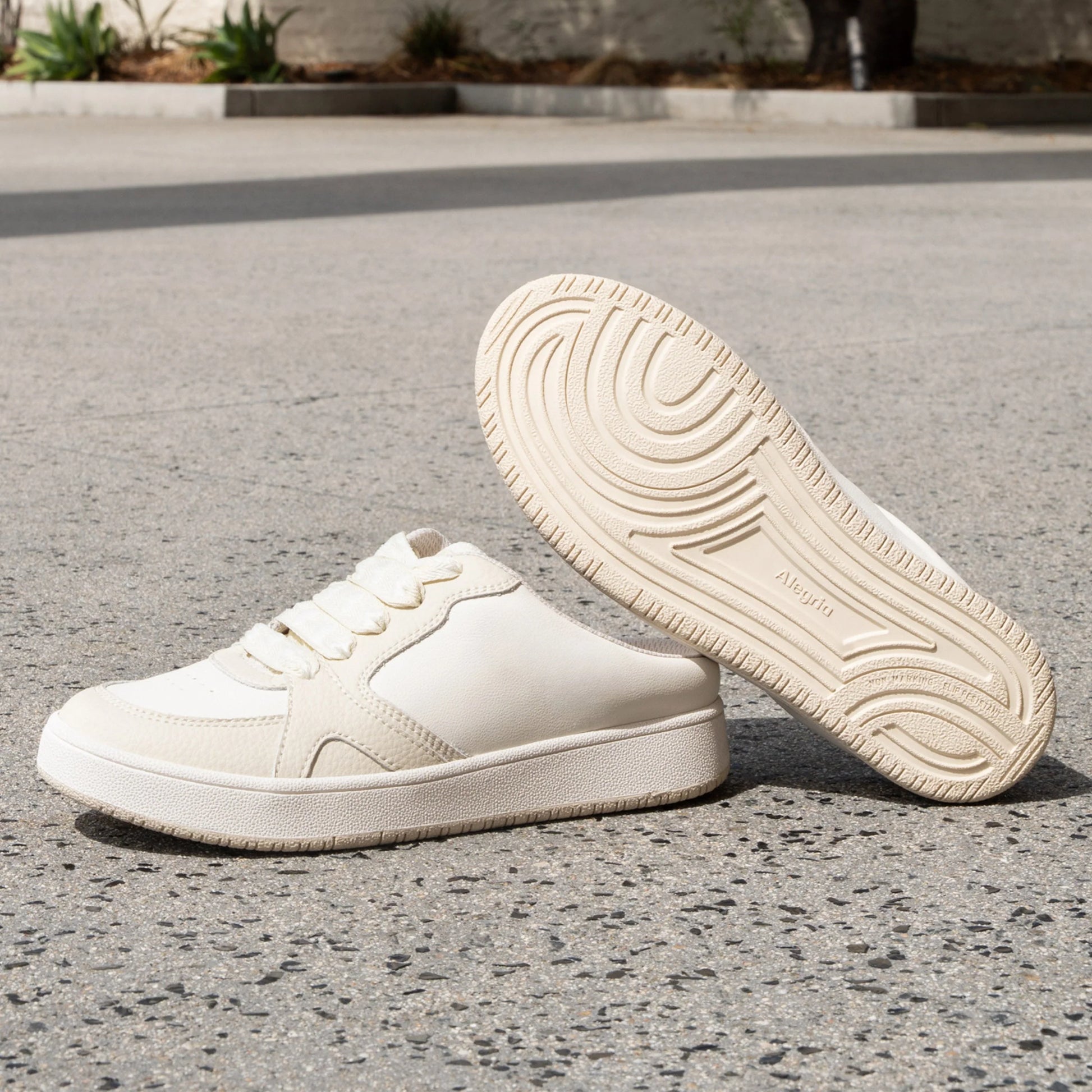 Features: Alegria Slip on Sneaker in Vanilla on soft Leather Upper