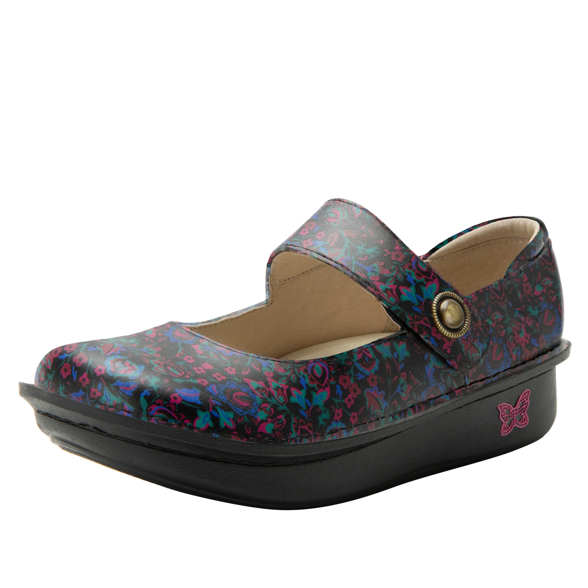 Our popular Mary Jane features an adjustable hook-and-loop close strap, each adorned with its own unique ornament. For added comfort and support, it incorporates an ergonomically designed memory foam and cork footbed that's easily removable with a classic rocker outsole that creates a natural rolling motion when walking.